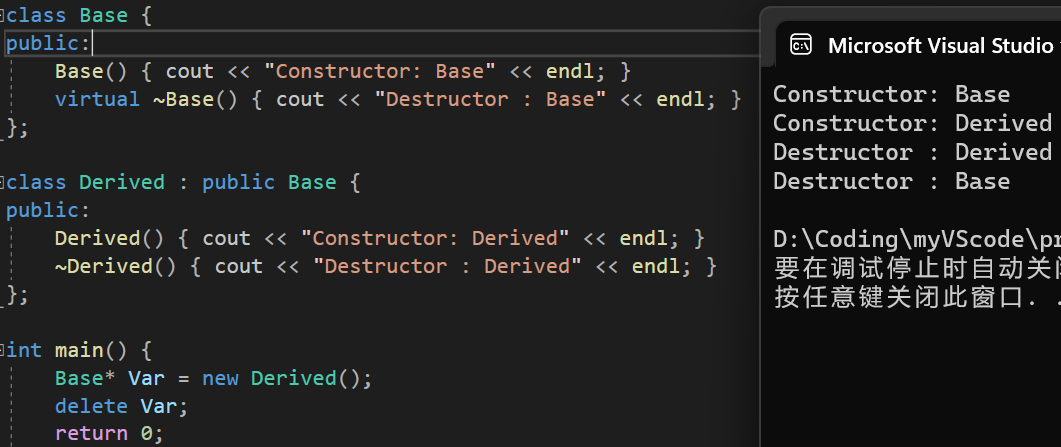 2.基类的析构函数为虚函数时