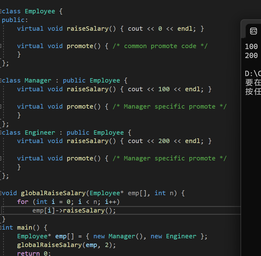 如果一个类从抽象类派生而来,它必须实现了基类中的所有纯虚函数,才能成为非抽象类。