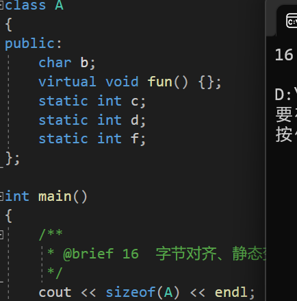如果存在虚函数,那么该类的大小会多一个指针的大小,该指针指向虚函数表。