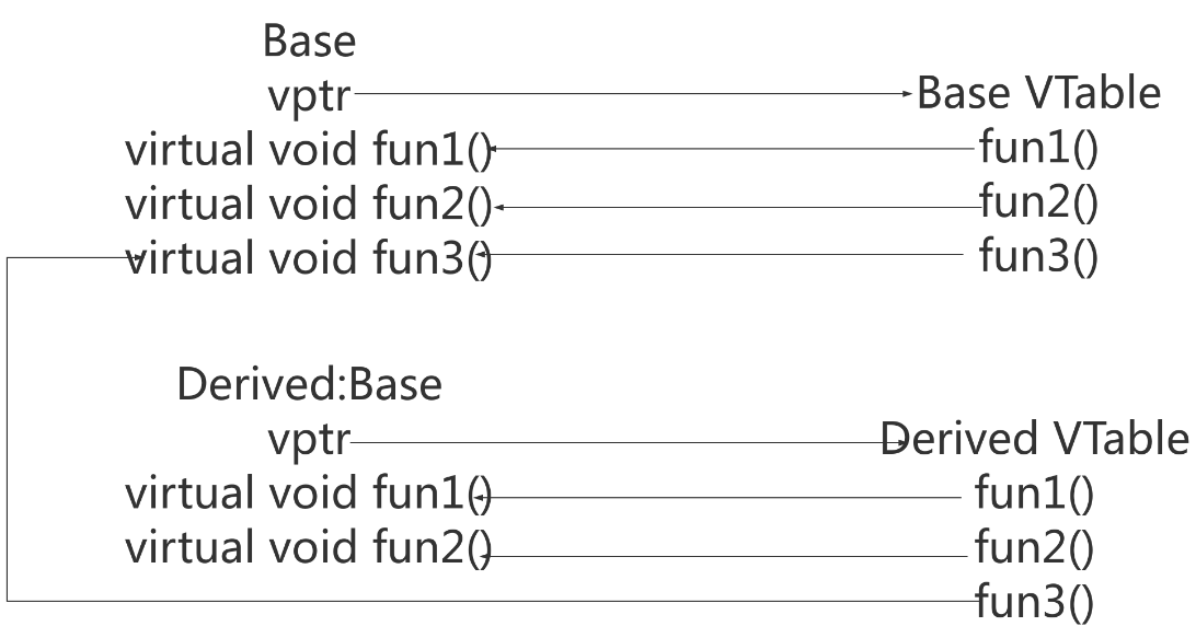 8.首先,每个使用虚函数的类(或者从使用虚函数的类派生)都有自己的虚拟表。该表只是编译器在编译时设置的静态数组。虚拟表包含可由类的对象调用的每个虚函数的一个条目。此表中的每个条目只是一个函数指针,指向该类可访问的派生函数。
